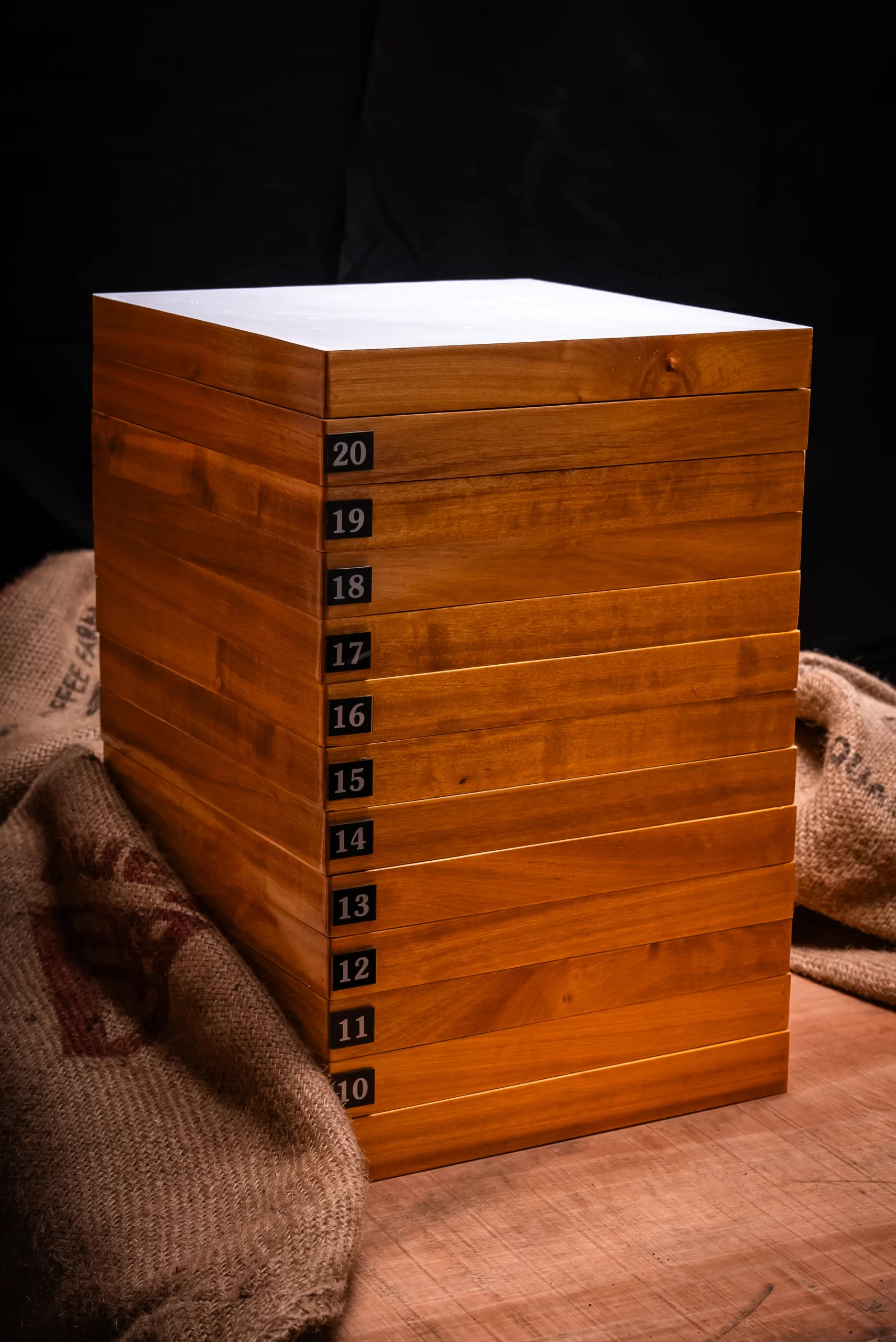 Each screen features high-quality stainless steel mesh housed in a durable wooden frame for long-term use and reliable results. The comprehensive sieve set includes ISO sizes ranging from Ø4 mm to Ø8 mm, allowing precise separation and measurement of coffee beans or ground coffee particles. A bottom blind screen and lid are included to ensure clean, controlled testing during analysis.