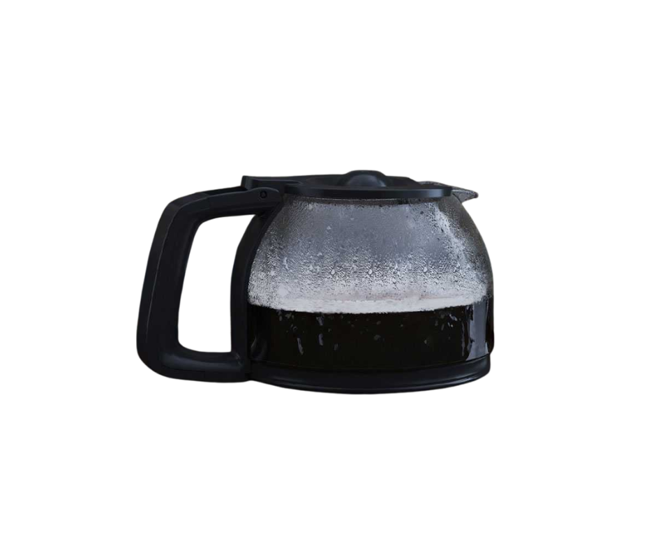 • Glass carafe keeps coffee warm