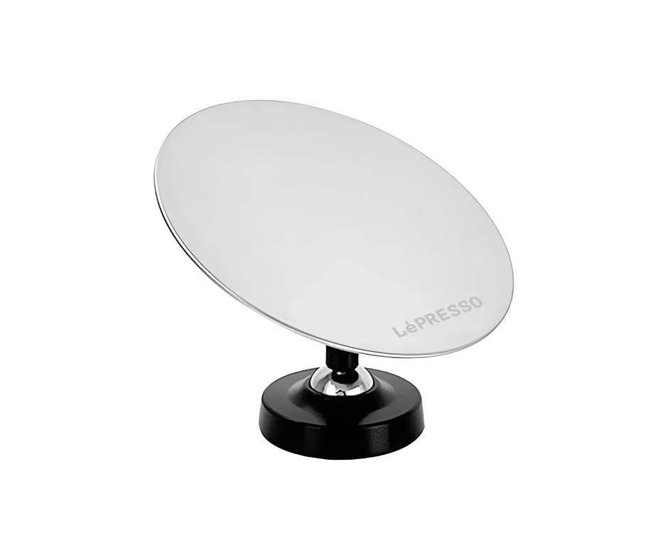 The Lepresso Espresso Shot Mirror With Stainless Steel Mirror is a practical and essential tool for baristas and espresso enthusiasts who want to precisely monitor espresso extraction without awkward bending.