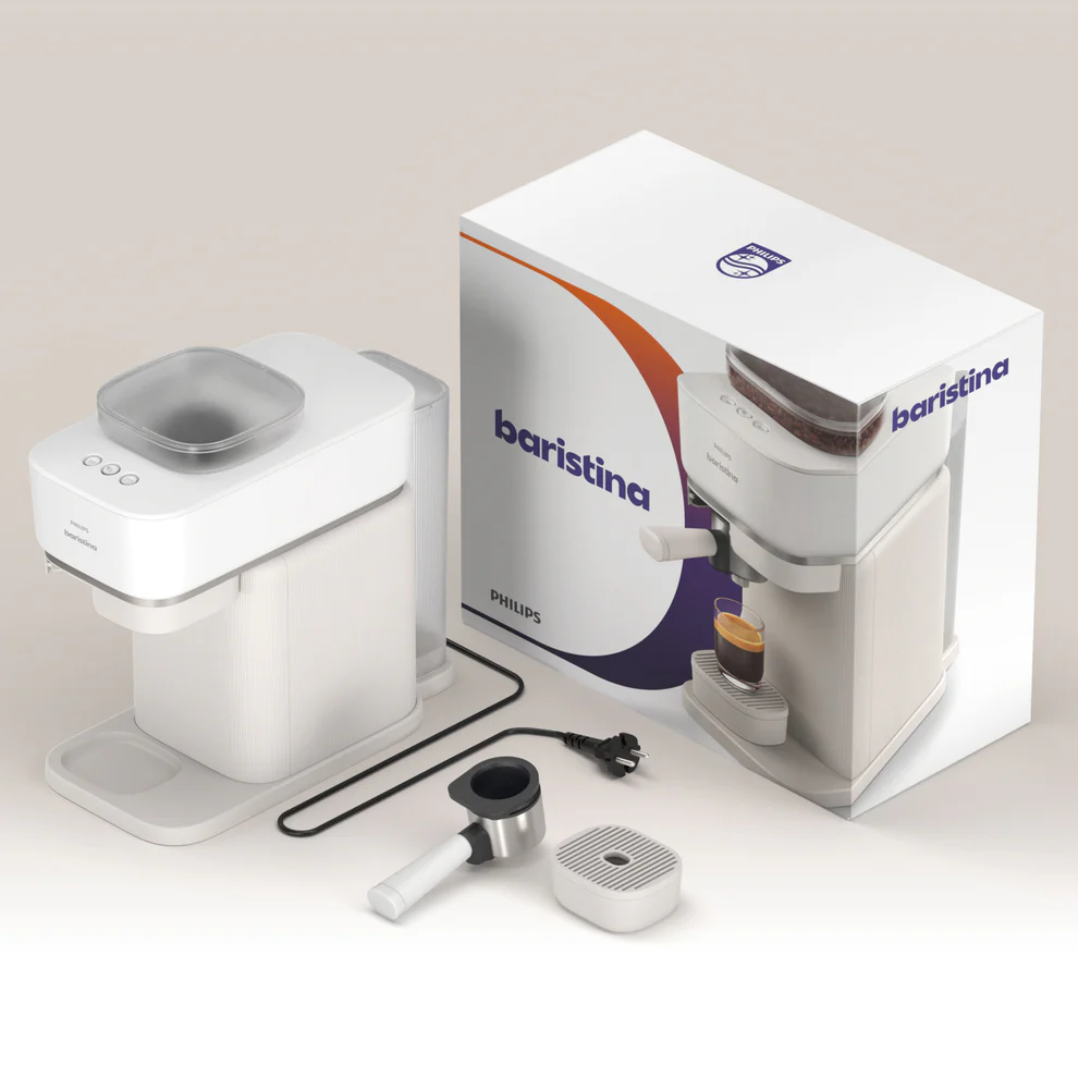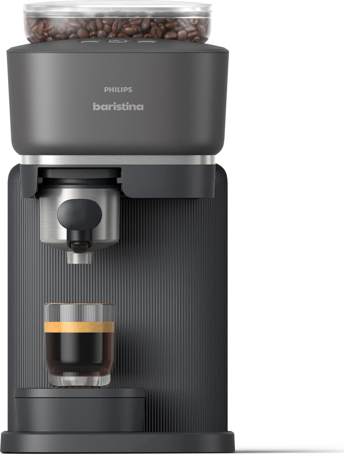 Swipe‑to‑brew countertop hybrid that grinds, tamps and pulls a shot automatically. Designed to simplify real espresso at home.